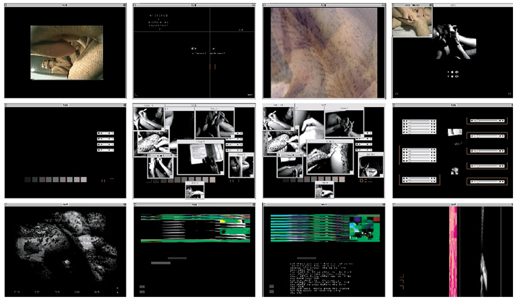 The CD-ROM investigates different relationships between sound and images of the performance. By its inherent interactivity the CD-ROM shifts the focus of my work from my own experience to that of the viewer, who is convoked to create new sound possibilities. Sounds are elaborated digitally from images of the performance and the sound of my voice reading the prayers written on my body.